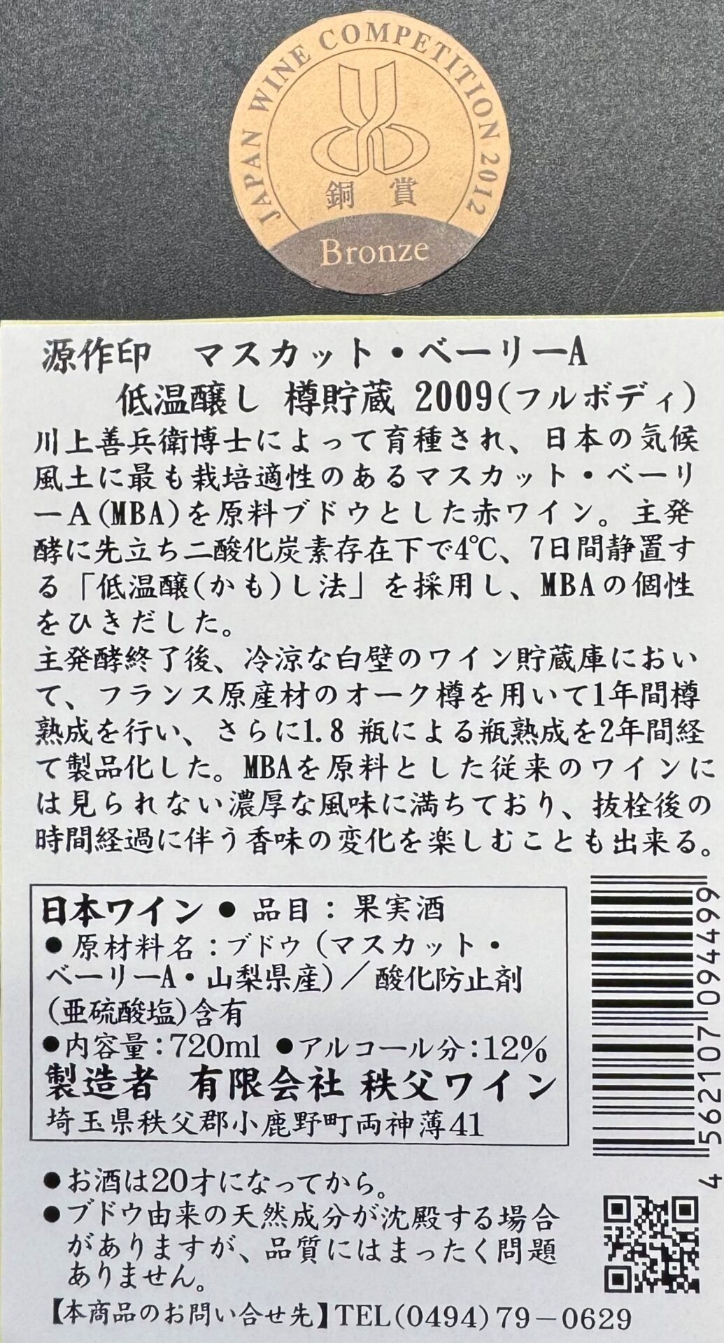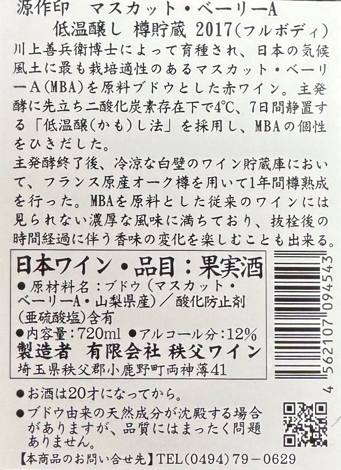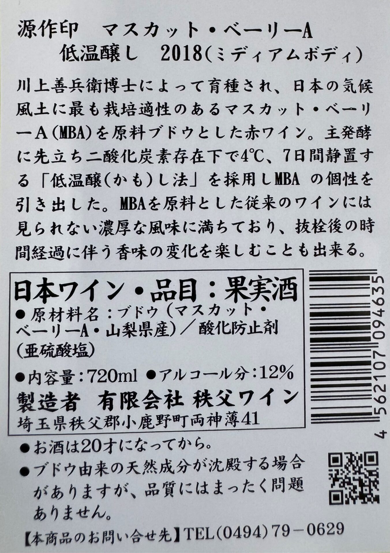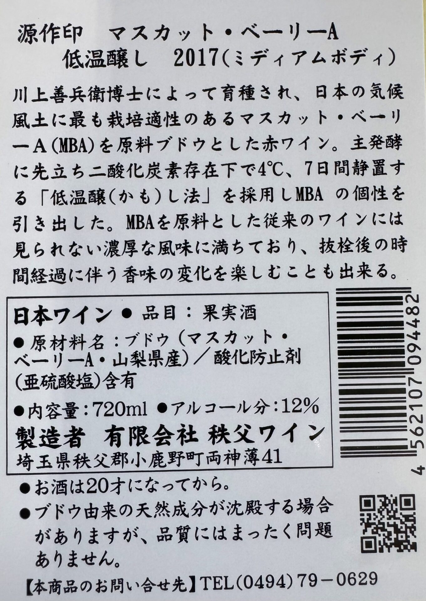 限定生産のマスカットベーリーとカべルネ・ソーヴィニヨンのブレンドワイン『秩父ワイン限定」含む